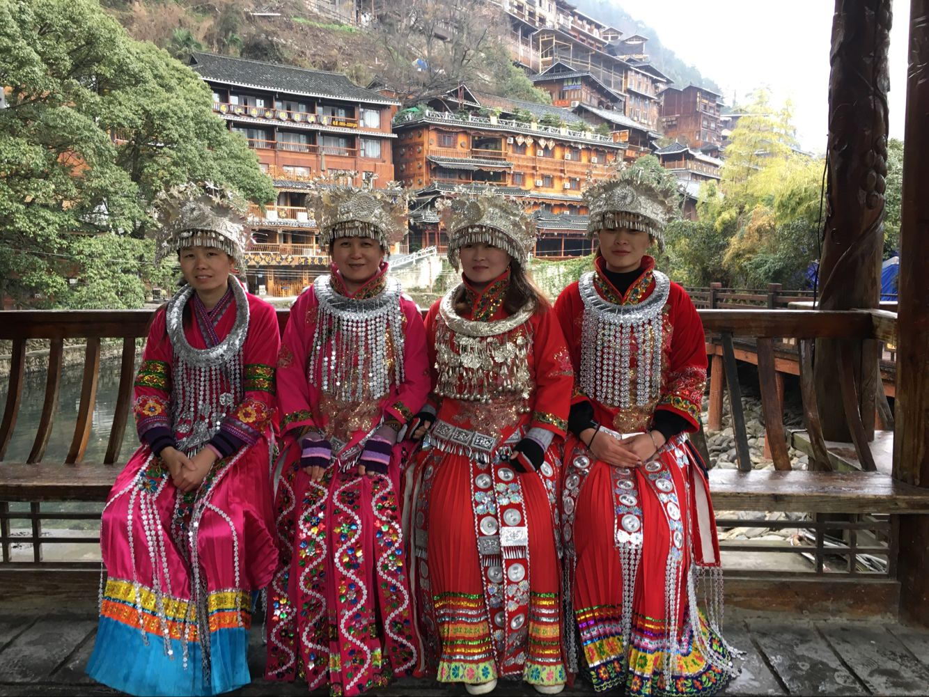 當晚我們就同苗族同胞居住在了同一苗寨,晚上我們一起品嘗了苗寨的特色美食,第二天一大早我們便早早的起床,一起游覽了千戶苗寨的風土人情,民族文化。我們觀賞了一場苗族同胞為我們精心準備的歌舞盛宴,大飽眼福。之后我們特意品嘗了長桌宴,深刻感受到了苗族同胞的熱情,以及民族文化的源遠流長。臨走之時我們也不忘給親人朋友帶上了苗寨土特產(chǎn)。