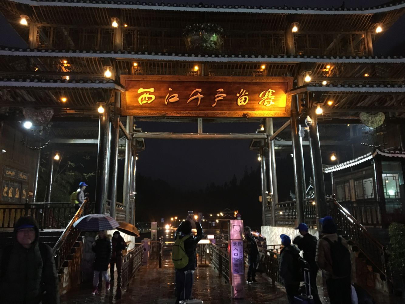 元月6號早上5點大家就在公司集合了,雖然起了個大早床,但是大家依然很準時的到達集合地點一起出發(fā)去廣州南站。在南站集合了這次旅游所有同事,大家乘坐高鐵出發(fā)去貴州都勻東站,歷時6個多小時車程。下了高鐵后,我們乘坐大巴去往第一個目的地千戶苗寨,中途我們吃個了晚餐。貴州的天氣相比東莞而言氣溫低上許多,而且千戶苗在處于群山之中,溫度更是低的嚇人,達到了零下。不過大家都早早的做好了御寒的準備。