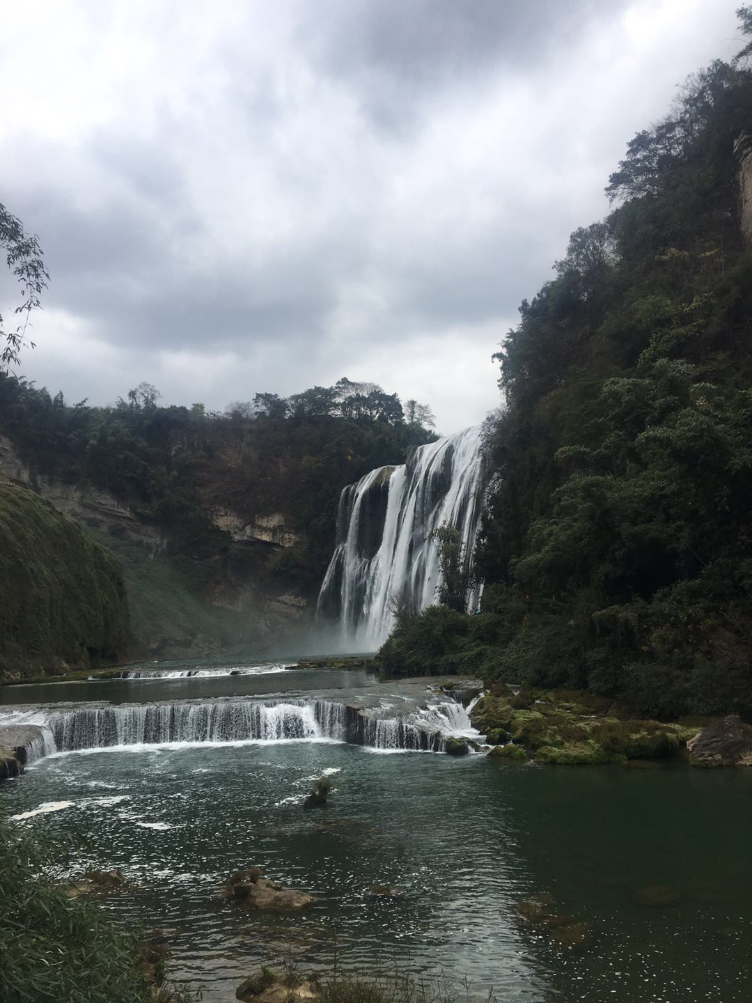 我們依依不舍的離開了千戶苗寨,坐車前往世界最大,人口最多的居住小區(qū)———貴陽花果園。當晚我們一行人就入住在麗楓酒店。第二天一大早我們就前往了美麗的黃果樹瀑布,一路上我們歡呼雀躍,風景美不勝收。見到黃果樹瀑布的第一眼,我們都被震撼到了,雖然是冬季,雨水較少,但依舊很壯觀,不愧是我國第一大瀑布